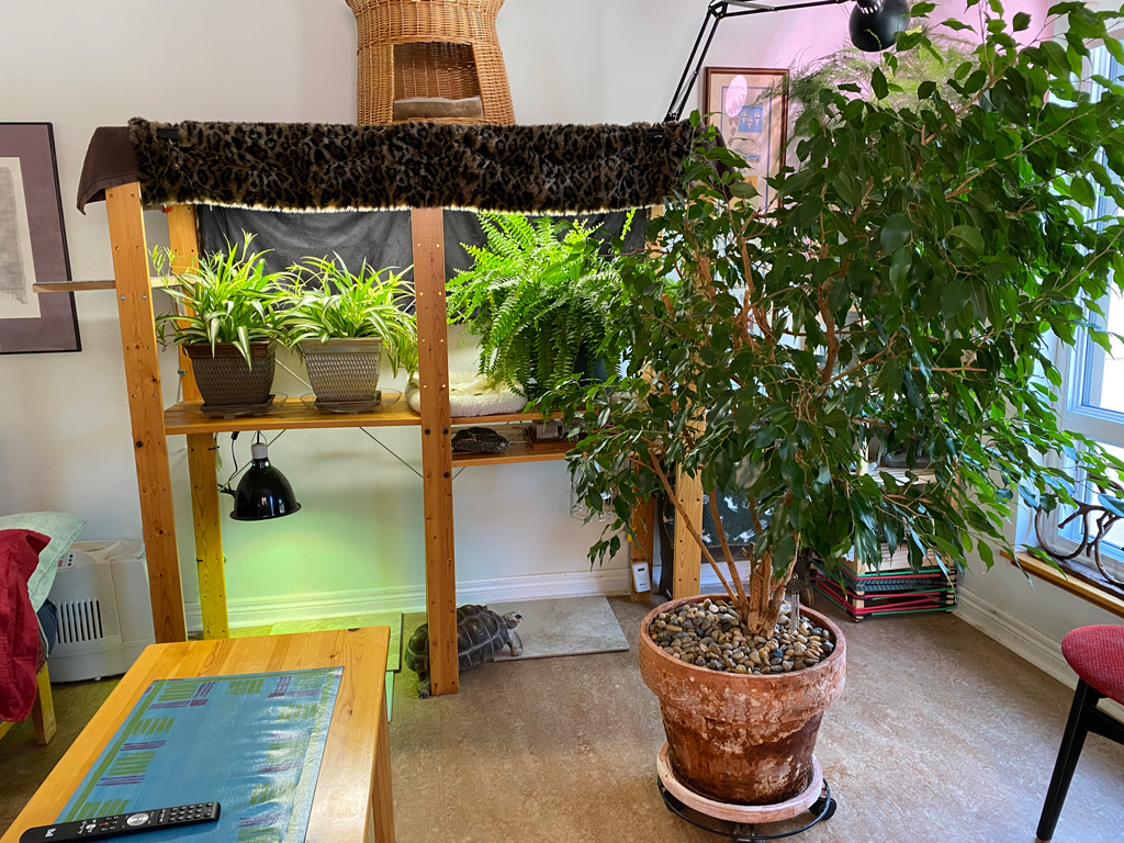 Because Toronto's climate is warm enough for a tortoise like Basil to be out-of-doors for about a maximum of eight months in the year, the provision of appropriate indoor accomodation is a must.